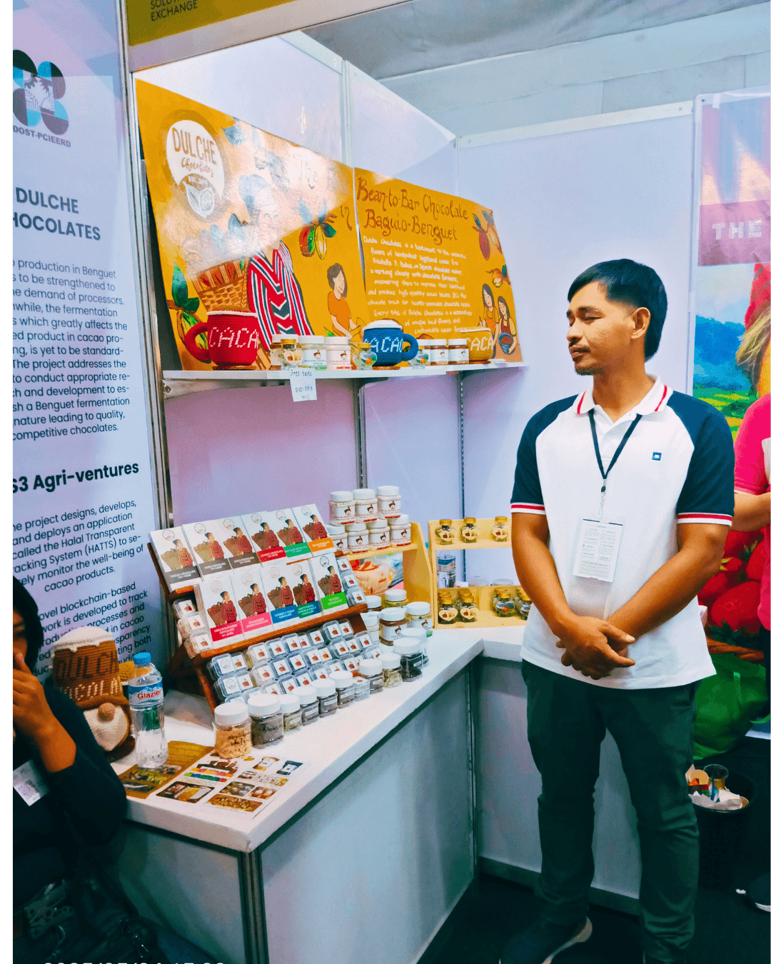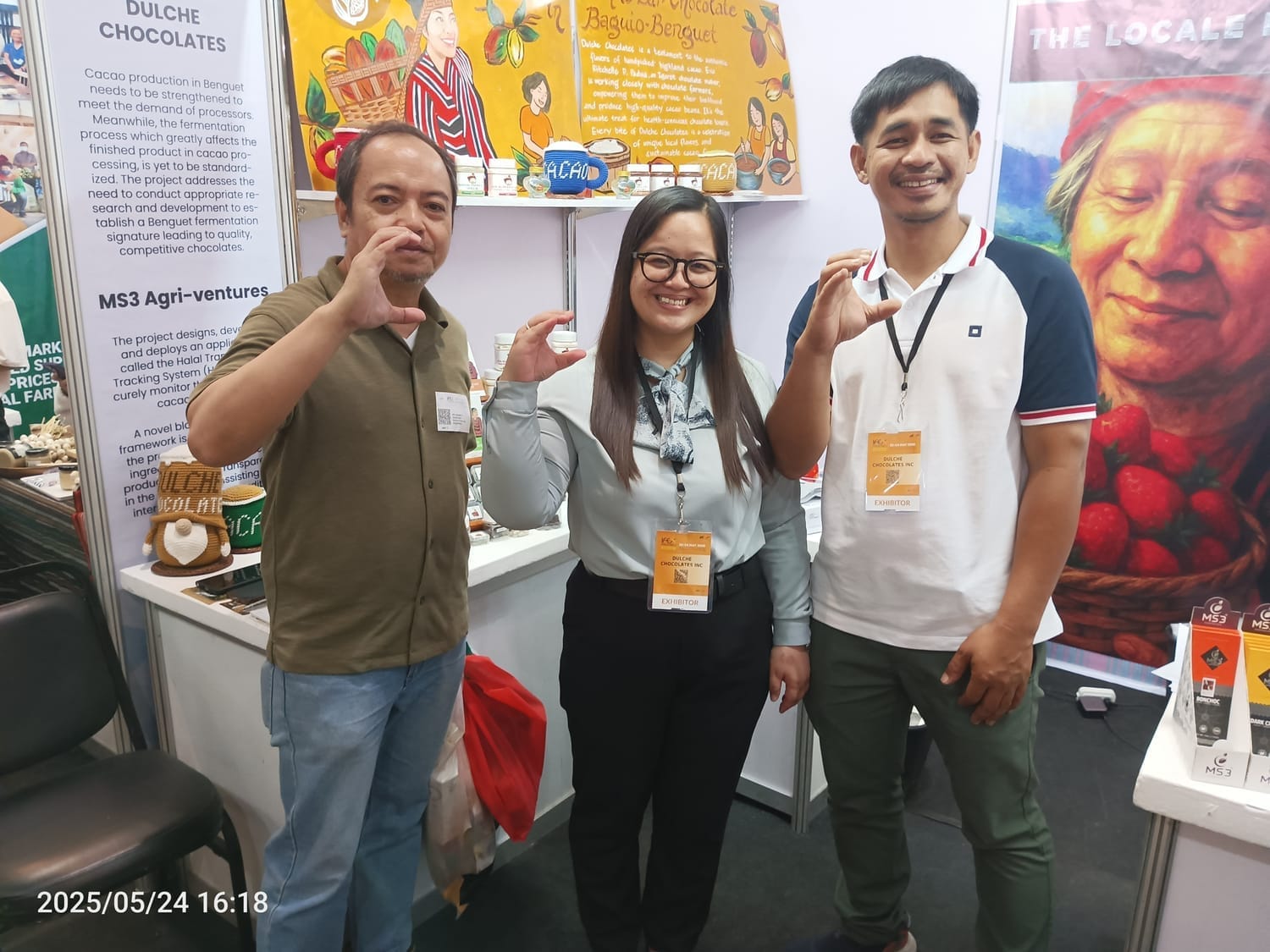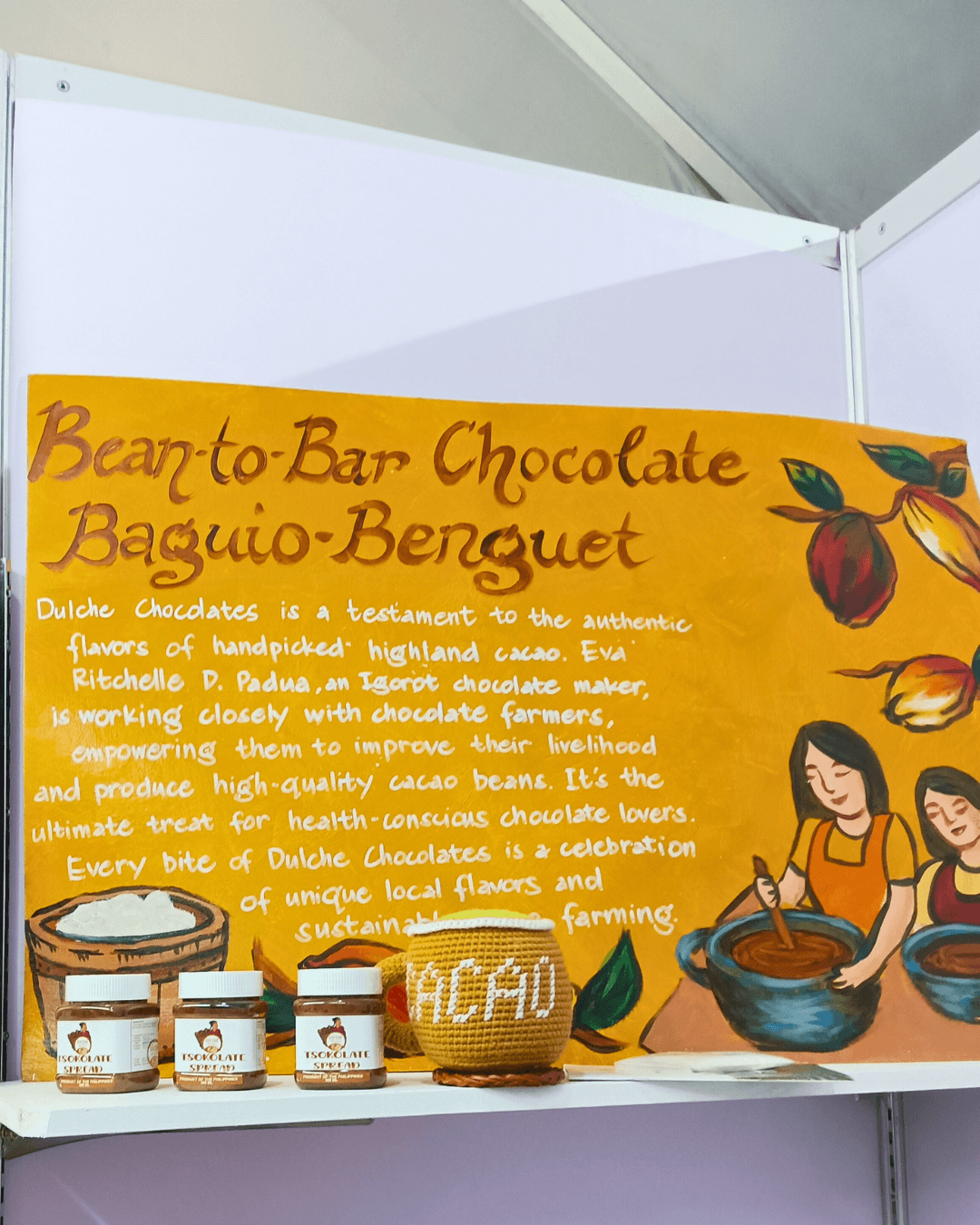 She welcomed me to her booth with so much warmth, and before long, we were deep in conversation about her journey. Eva isn’t just making chocolate — she’s building a movement. Dulche was born out of her and her team’s passion to uplift cacao farmers in the Cordilleras. With quiet strength and deep commitment, she talked about how they train local communities — from cacao farm maintenance, post-harvest handling, all the way to making tablea and fine chocolates. She doesn’t just send support from afar — Eva is in the field, boots on the ground, sharing knowledge and building futures with every workshop.